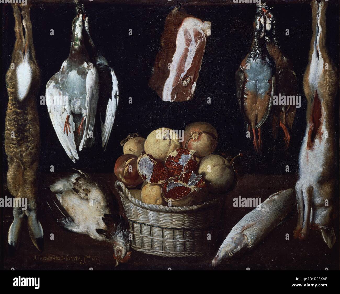 BODEGON CON CAZA Y FRUTAS - SIGLO XVII - 84x105 cms - pintura barroca - Escuela Española. Autor: Alejandro Loarte. Ubicación: Fundación SANTAMARCA. MADRID. España Fotografía de stock - Alamy